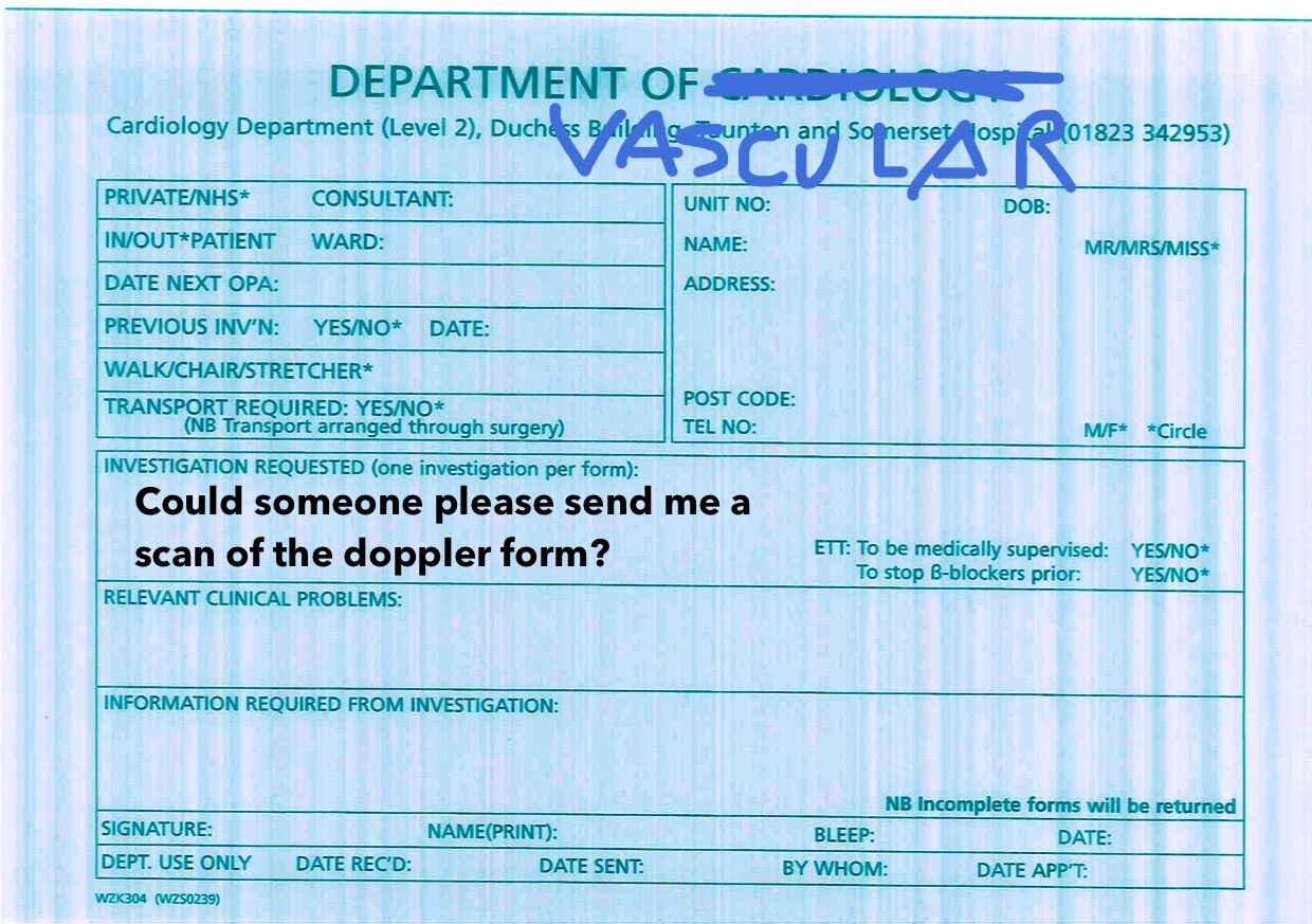 When we want photos of rashes and lesions for the medical record. Complete, scan and email, or go find them next to CCU.