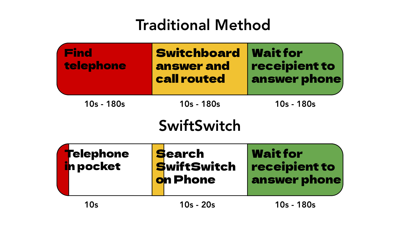 By using this app, we are reducing the variability in the time taken to make a call to someone. In a best case scenario, calling the human switchboard may be as good as or slightly slower than using the app. But in a worst case scenario (going from my own experience), the app wins hand down. Although the worst case scenario is not the average case, the use case of hospital telephony needs hgih reliability for potential clinically urgent or emergency scenarios.